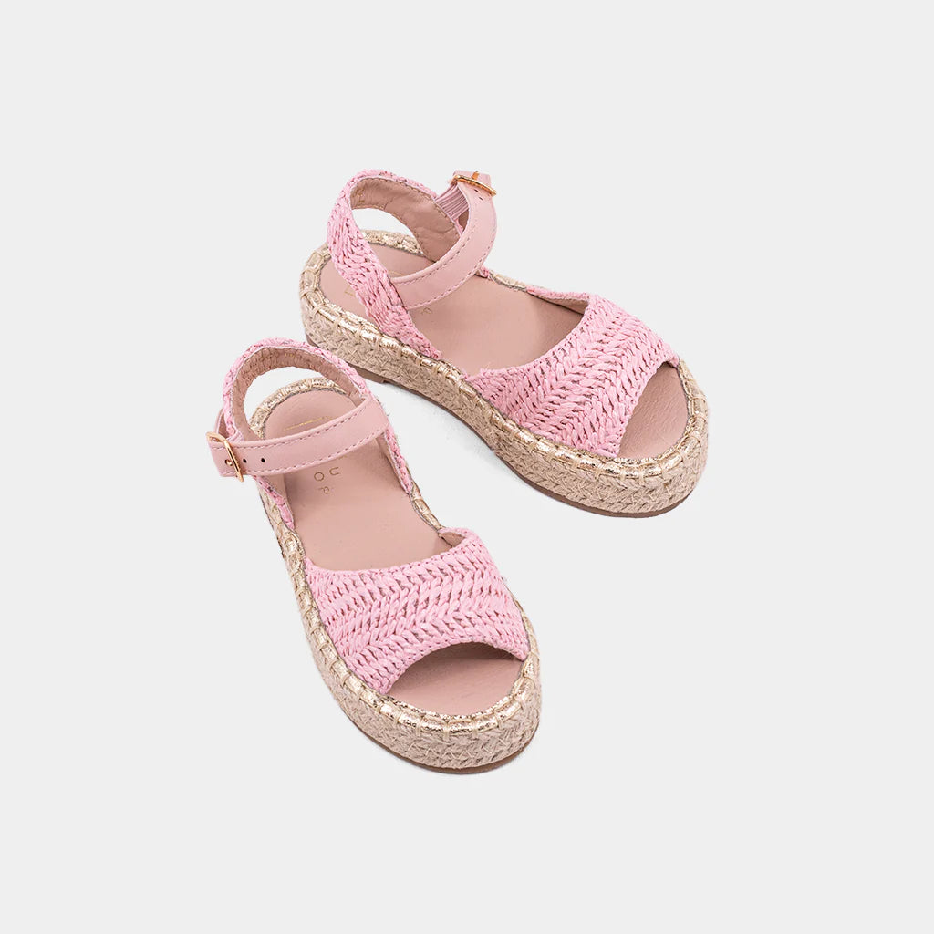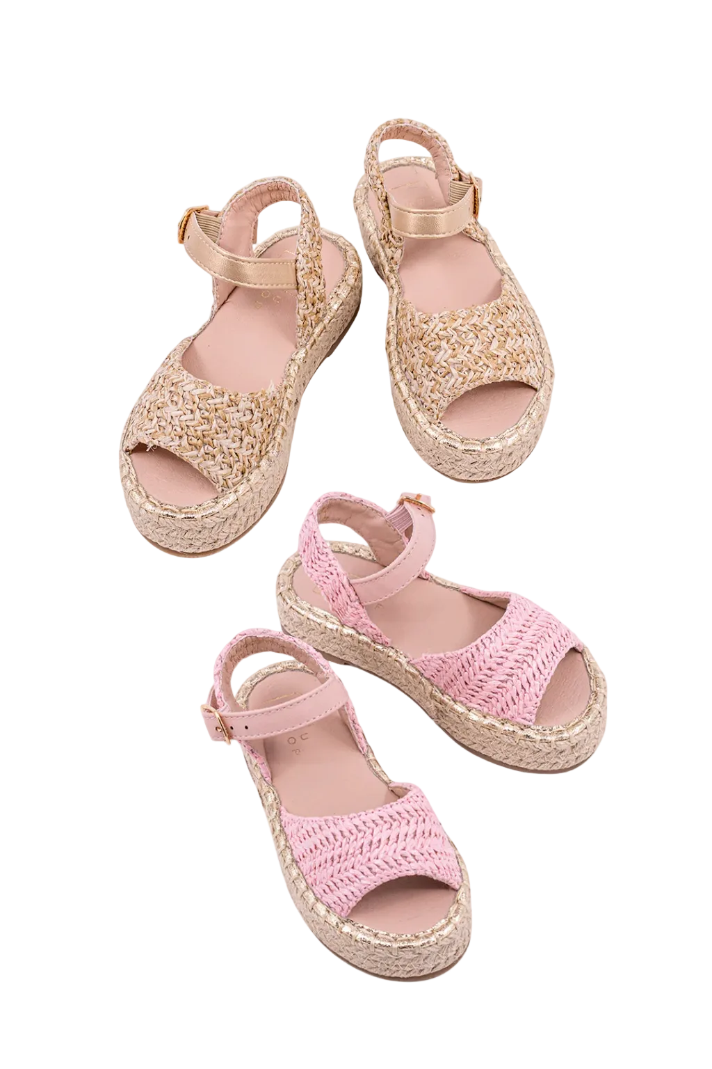 The CYNTHIA MINI is a charming blend of playful style and effortless comfort, designed for both kids and toddlers. Its delicate woven upper adds a touch of artisanal charm, while the adjustable ankle strap ensures a secure fit. A cushioned footbed provides all-day comfort, and the sturdy rubber sole offers reliable traction for little explorers. Available in bone and rose woven. Perfect for warm-weather adventures with a stylish twist!