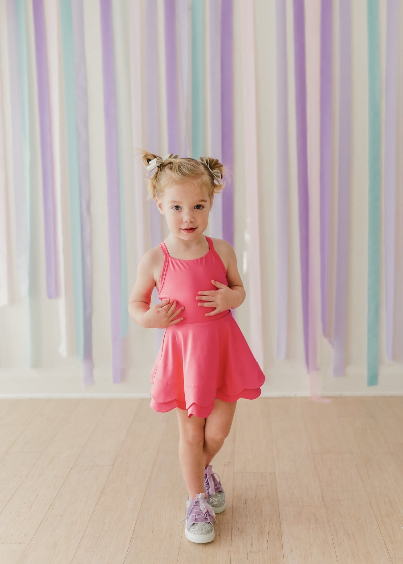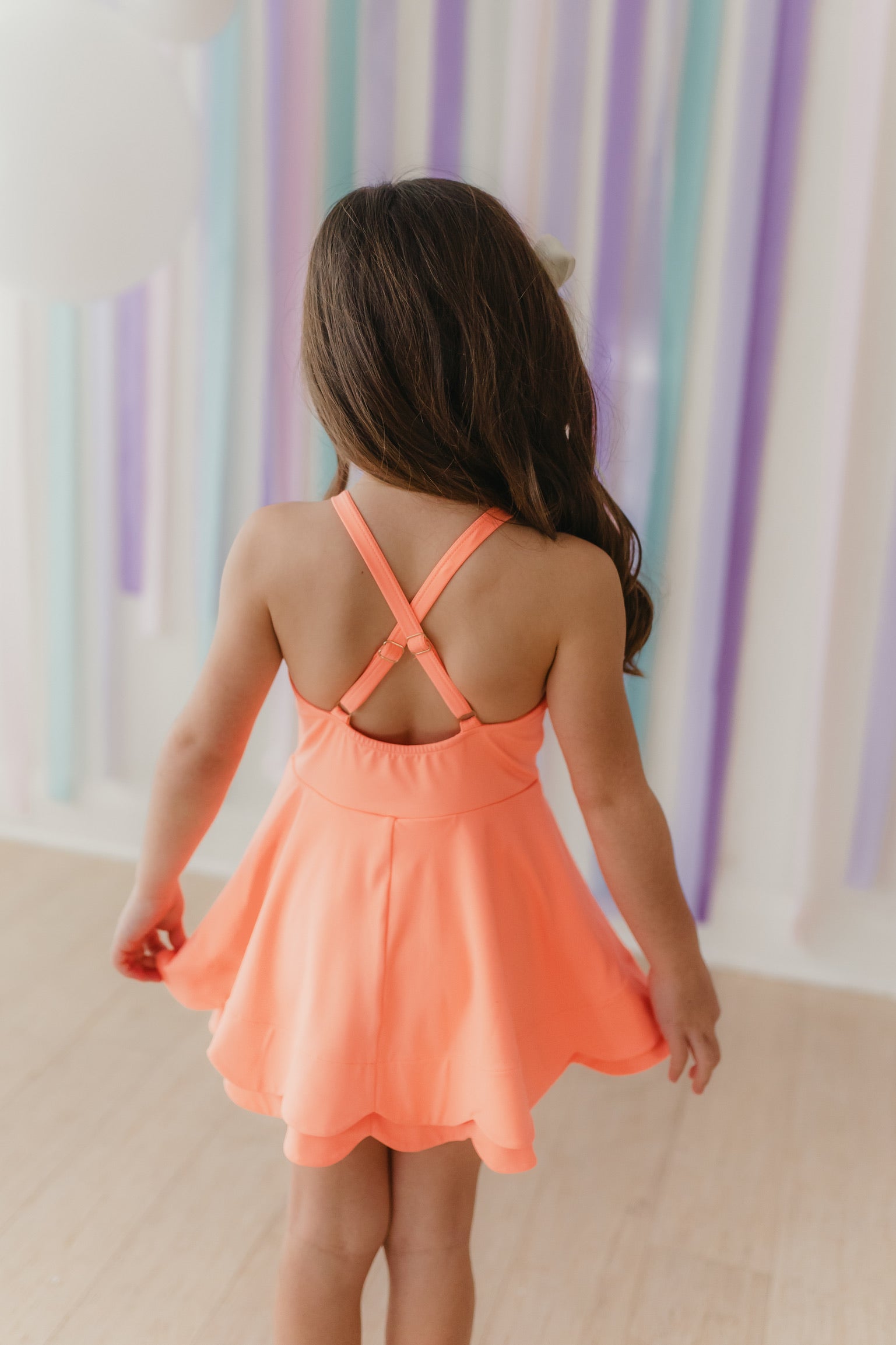 The Scallop Athleisure dress is as cute as it is practical. This stylish and comfy dress is perfect for active girls - with a sporty scallop hem and built-in shorts, she can stay on the move while looking effortlessly chic.
