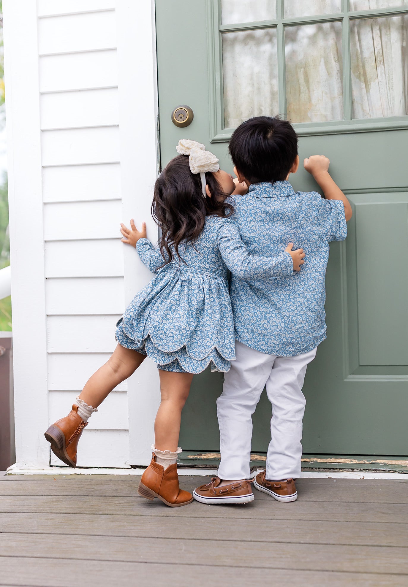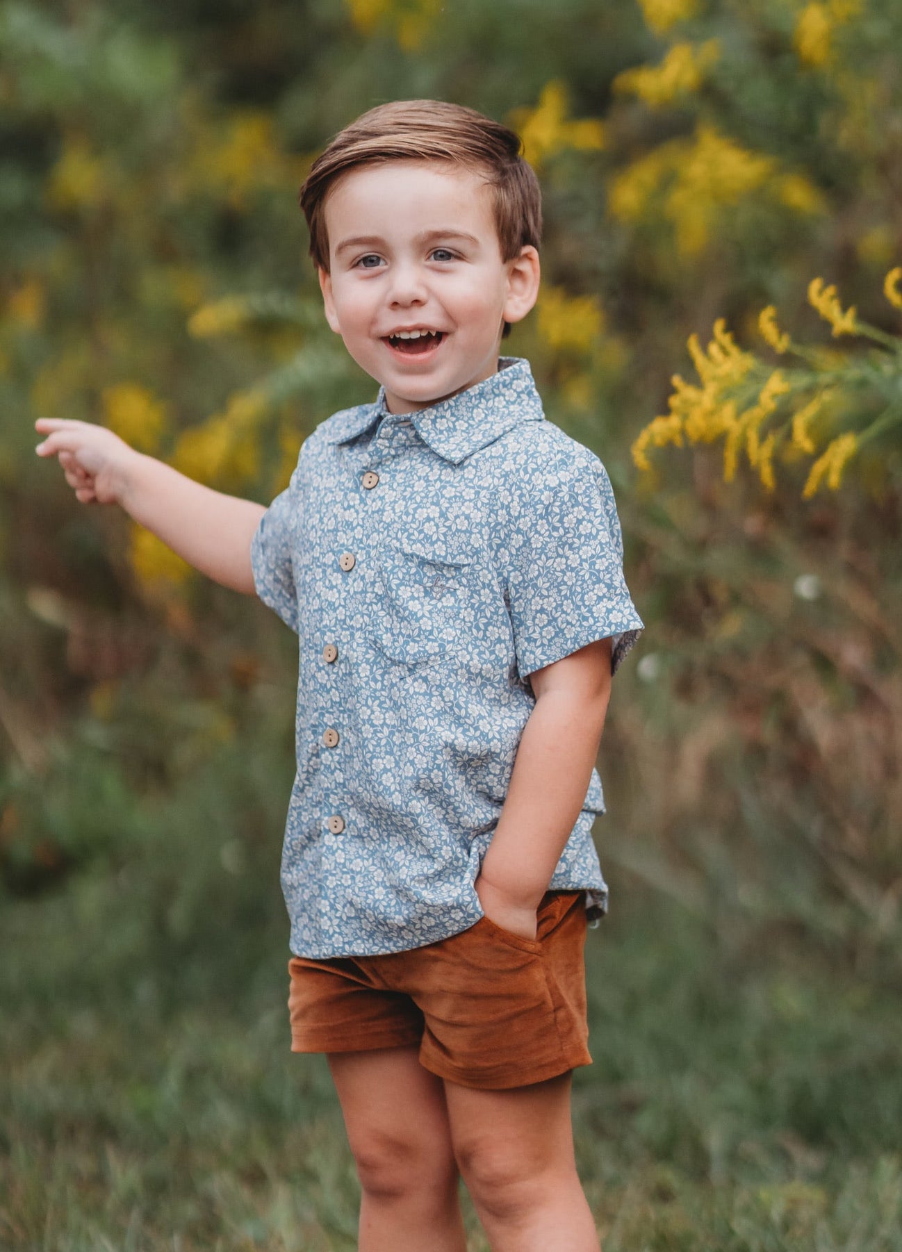 Spice up his fall wardrobe with our Delphinium Button-Up Shirt! This shirt is perfect for both casual and dressy occasions, with its unique fall floral print. The button-up style keeps it trendy, while the floral print adds a touch of playful charm!