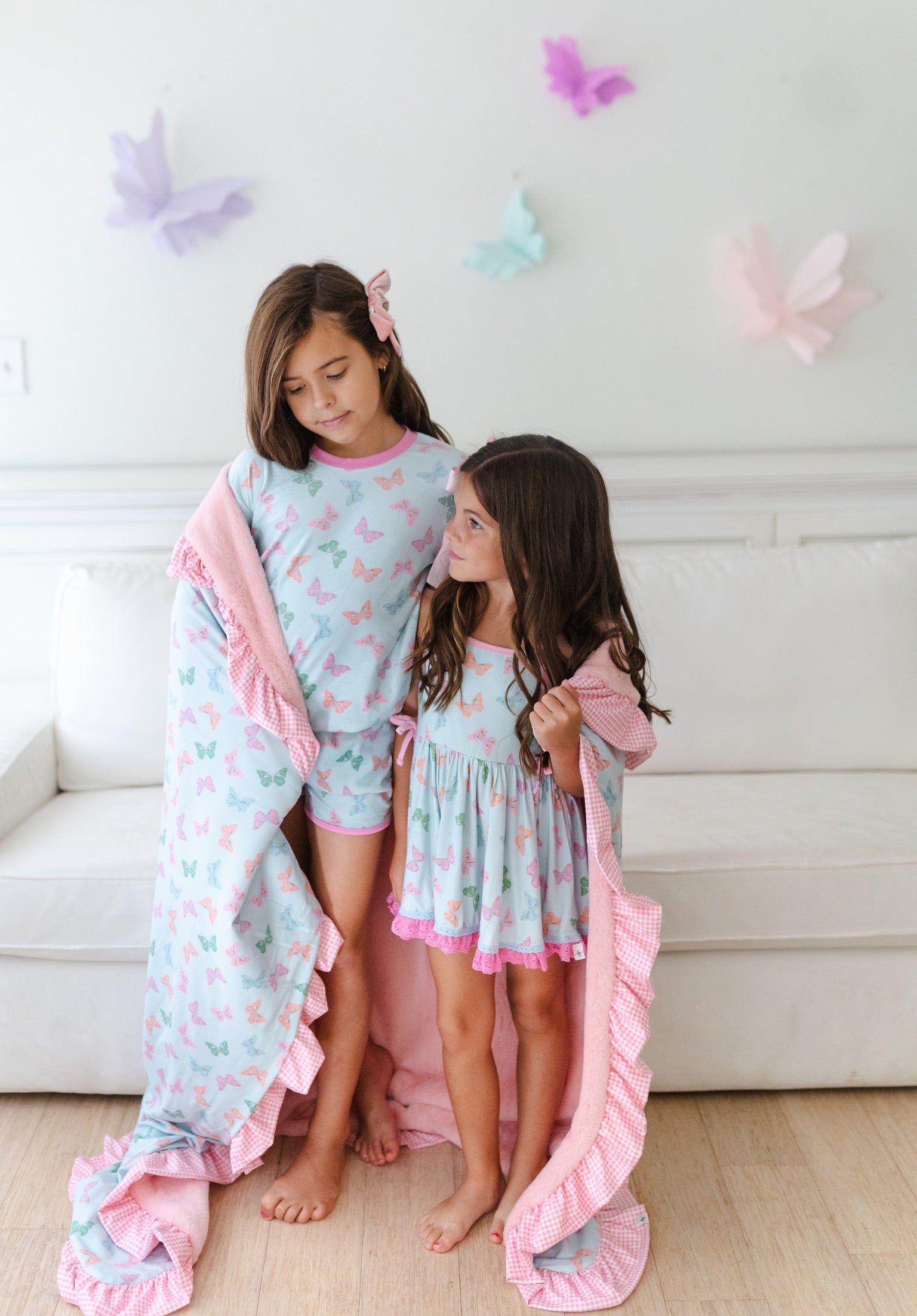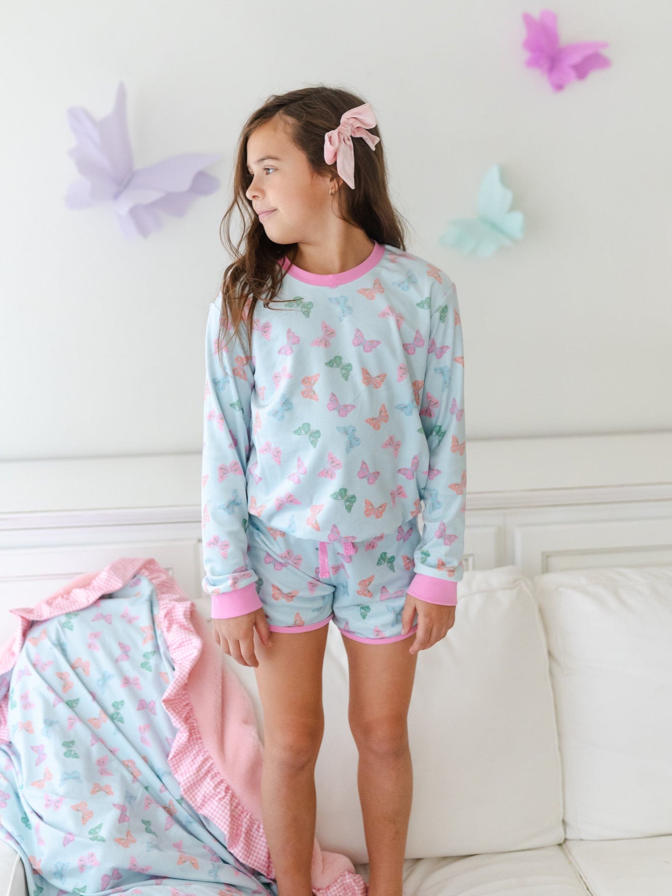 Wrap yourself in softness with the Butterfly Kisses Cozy Comfort Set. Featuring a velour fabric adorned with a whimsical butterfly print, this set promises ultimate comfort while adding a fun, fluttery vibe to your loungewear. Perfect for relaxing days or cozy evenings, it lets you embrace a playful spirit while staying snug and stylish.