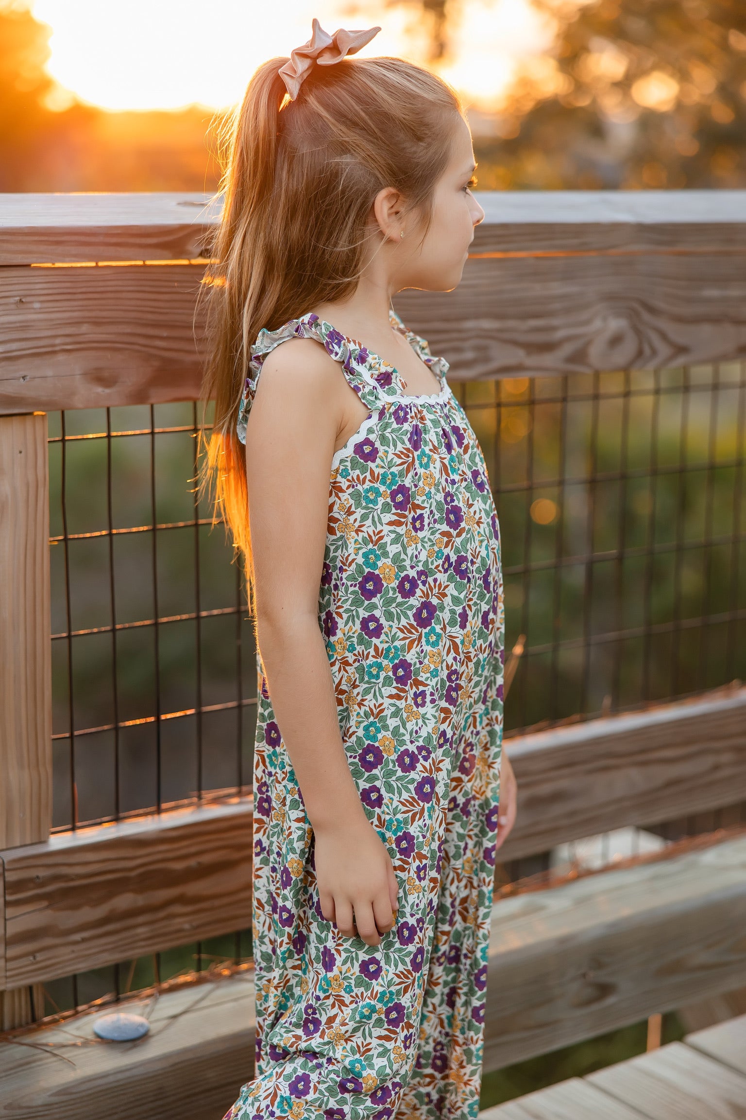 Bring bold color and playful flair to your wardrobe with the Gemstone Garden Leggy Romper. Its wide-leg cut creates a breezy, comfortable fit, while the rich jewel tone floral print adds a lively touch perfect for any sunny adventure or casual day out. Embrace effortless style and comfort in one fun package.