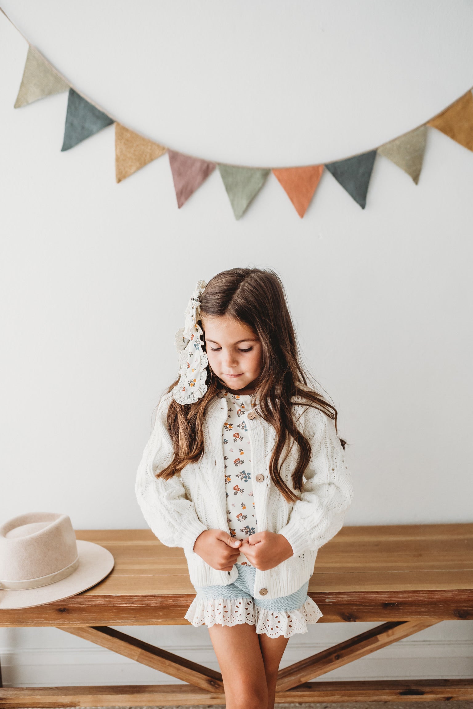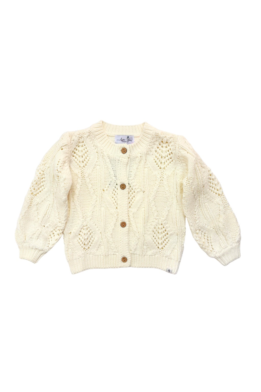 Step into cool autumn nights with our Marshmallow Cardigan! This cozy white sweater features bamboo buttons and is perfect for any girl looking to stay warm and stylish.