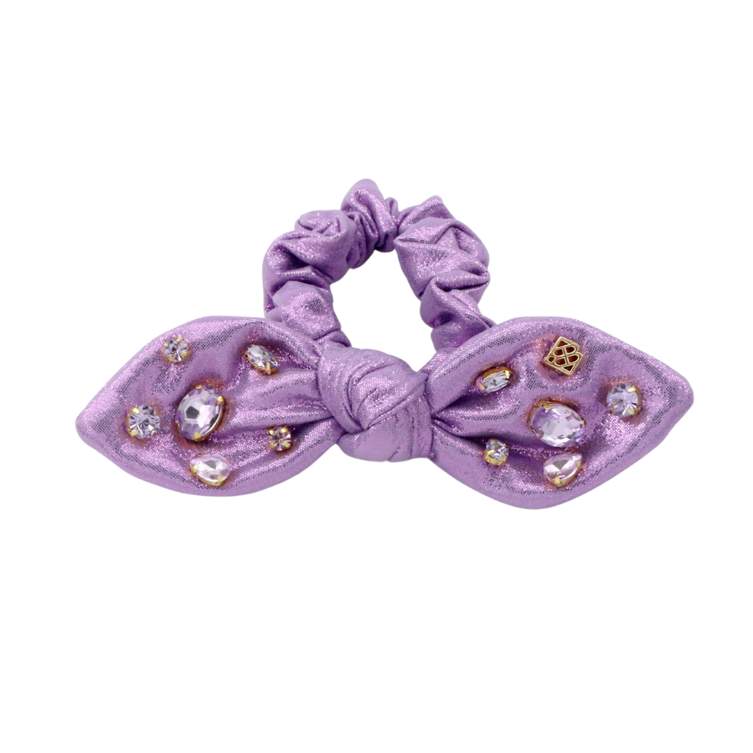 Shimmer Bow Scrunchie with Hand Sewn Crystals in Purple