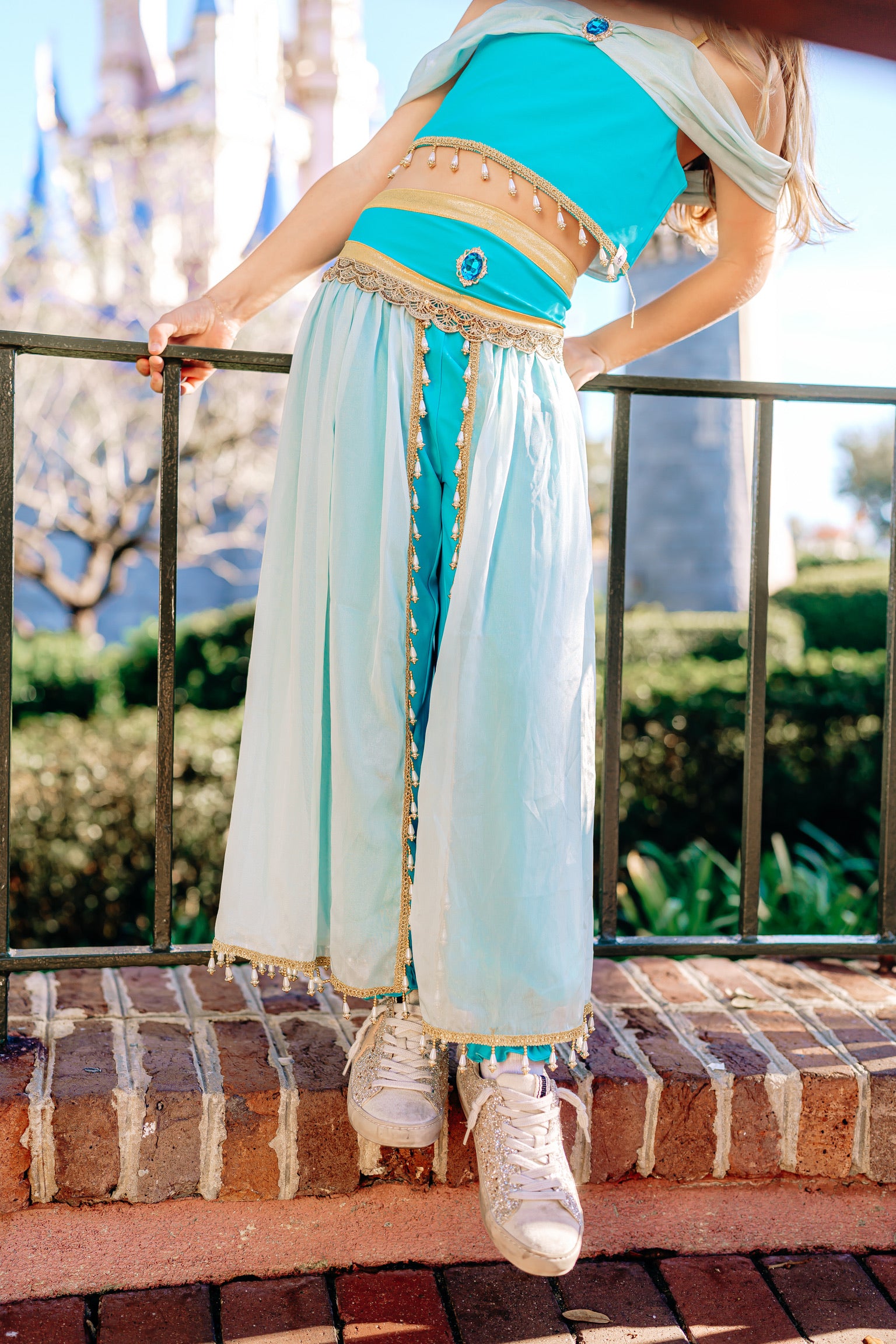 Let her step into a world of magic and adventure with this Jasmine-inspired athletic set, designed in rich teal hues, desert-gold accents, and subtle palace-inspired details. Perfect for active little dreamers, this set blends the elegance of a storybook princess with the comfort of modern athletic wear.