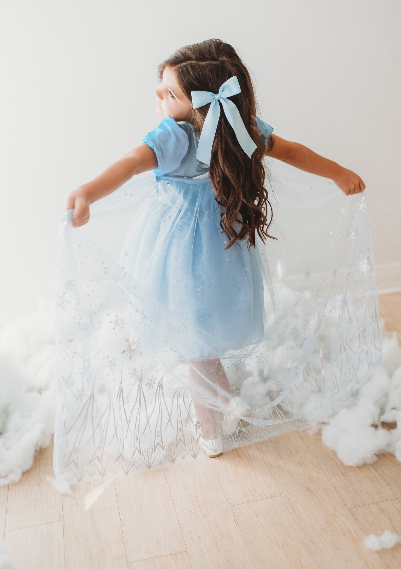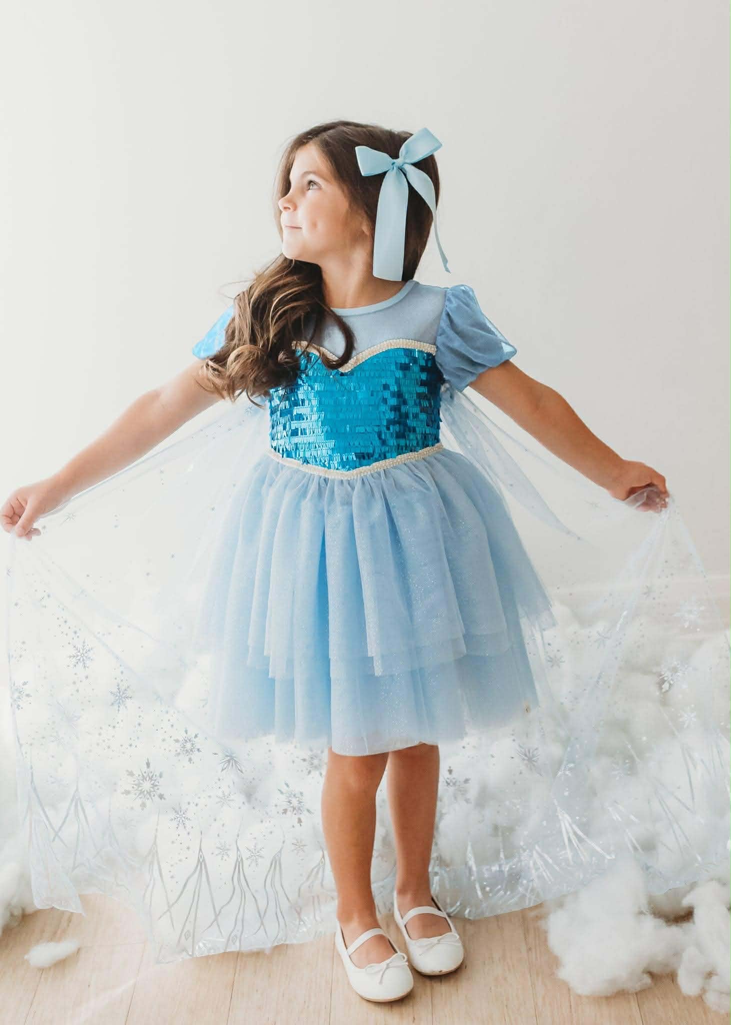 Whether she’s racing off to play, pretending to build her own ice palace, or exploring on a magical vacation, this dress blends active comfort with frozen fairytale charm.