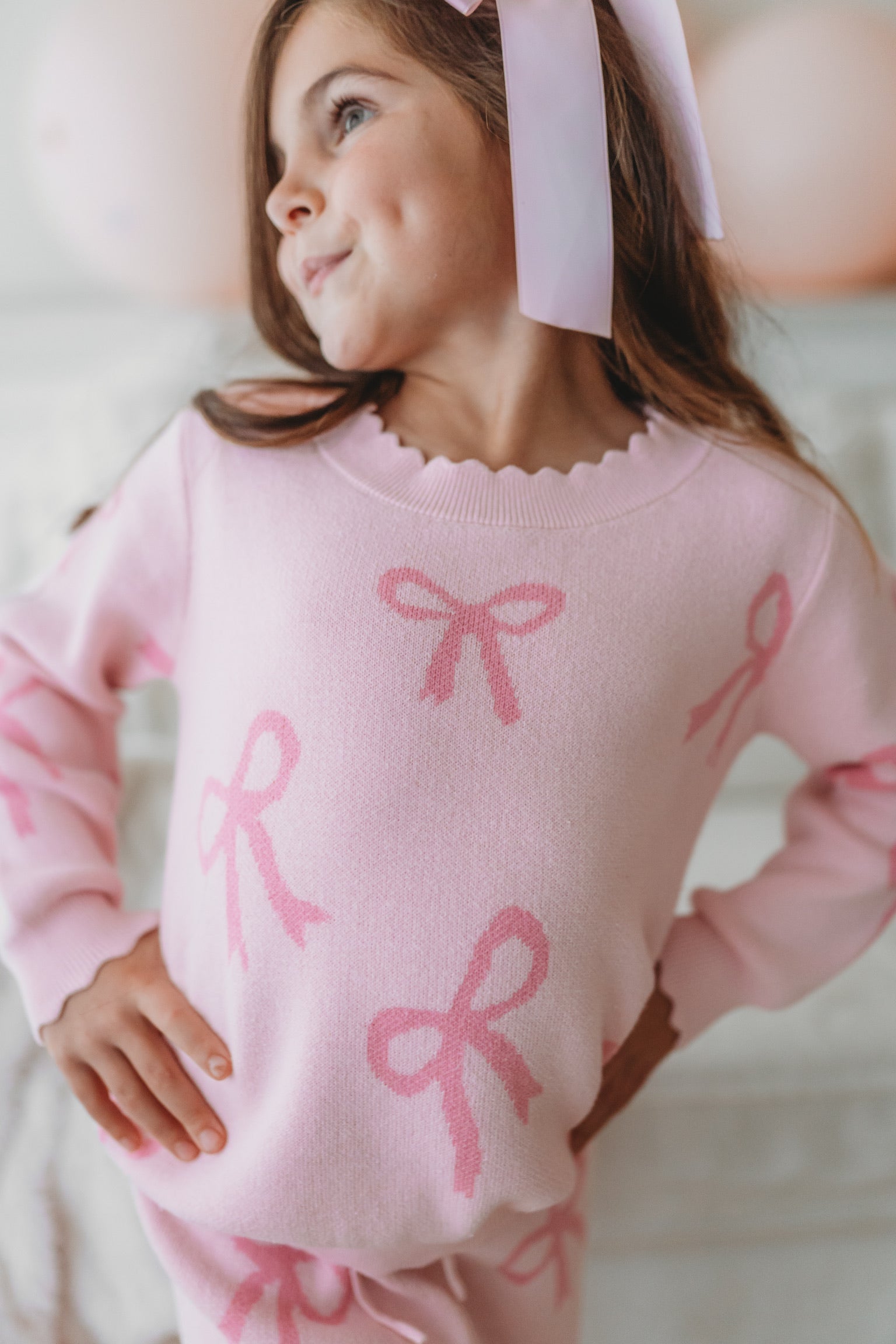 Wrap yourself in sweetness with this charming pink sweater adorned with delicate bows. Perfect for adding a touch of whimsy to your everyday wardrobe, this cozy piece brings playful elegance to any outfit. Whether you're dressing up for a special occasion or keeping it casual, the bow details create an instantly cheerful vibe that's sure to turn heads and spark smiles.
