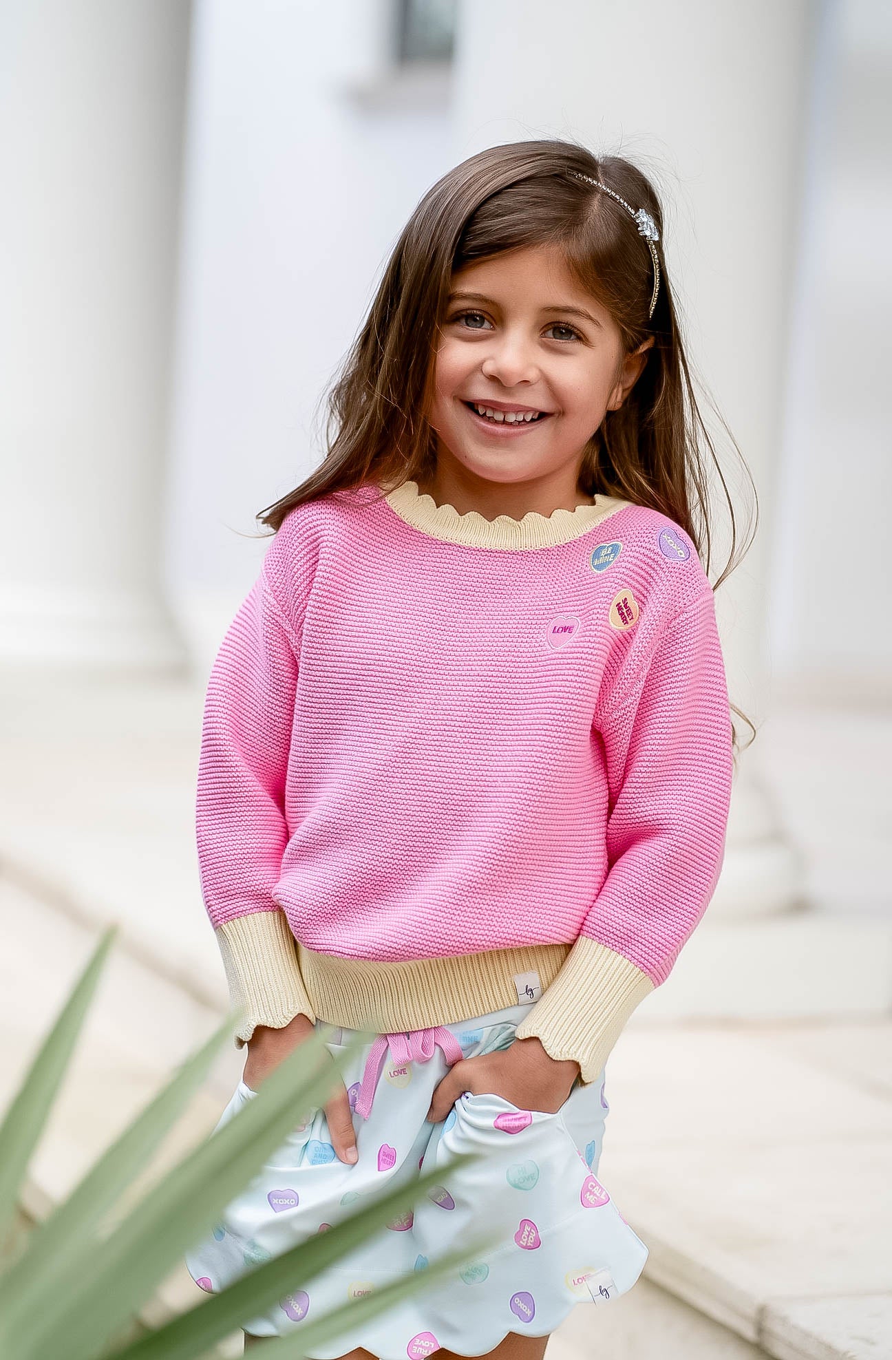 Spread the love in this charming pink sweater featuring delicate embroidered conversation hearts scattered across the front. Soft scallop trim along the neckline and cuffs adds a sweet, feminine touch that's perfect for Valentine's season or year-round sweetness. Cozy, cute, and conversation-starting—this piece brings nostalgic charm and modern comfort together. Ideal for layering or wearing solo, it's a wardrobe essential that makes every day feel a little more special.