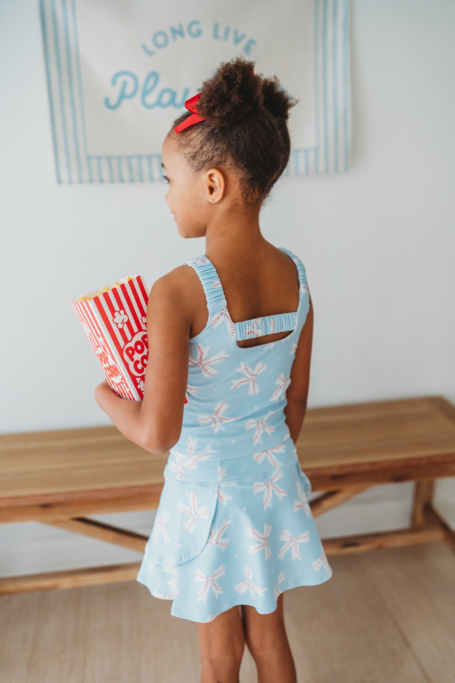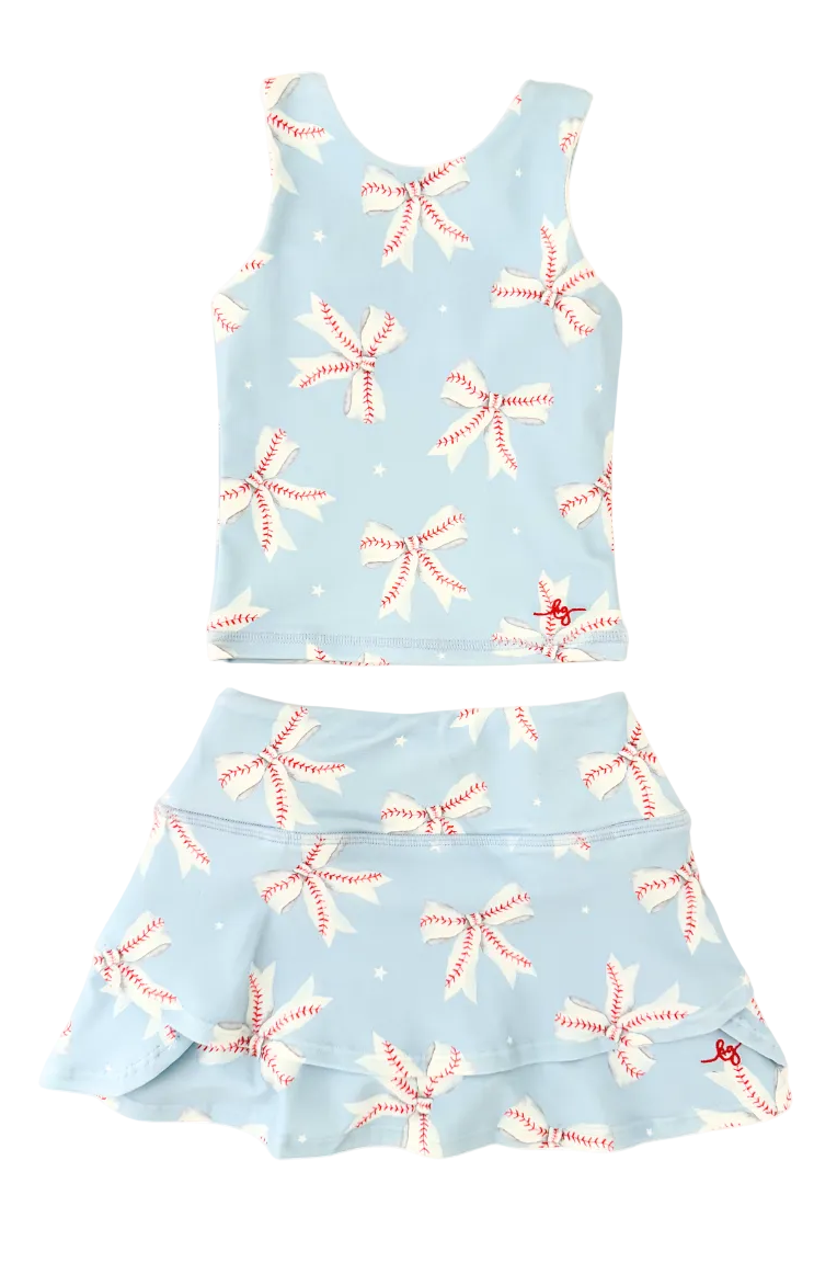 Cheer on your favorite team in style with the Diamond Days Athletic Set—designed for young fans who want comfort and flair at the ballpark. This two-piece set features a coordinated athletic top and skort with built-in shorts, giving you the freedom to move and play. Crafted from a breathable polyester-spandex blend, it's soft, stretchy, and built to last through all your diamond day adventures.