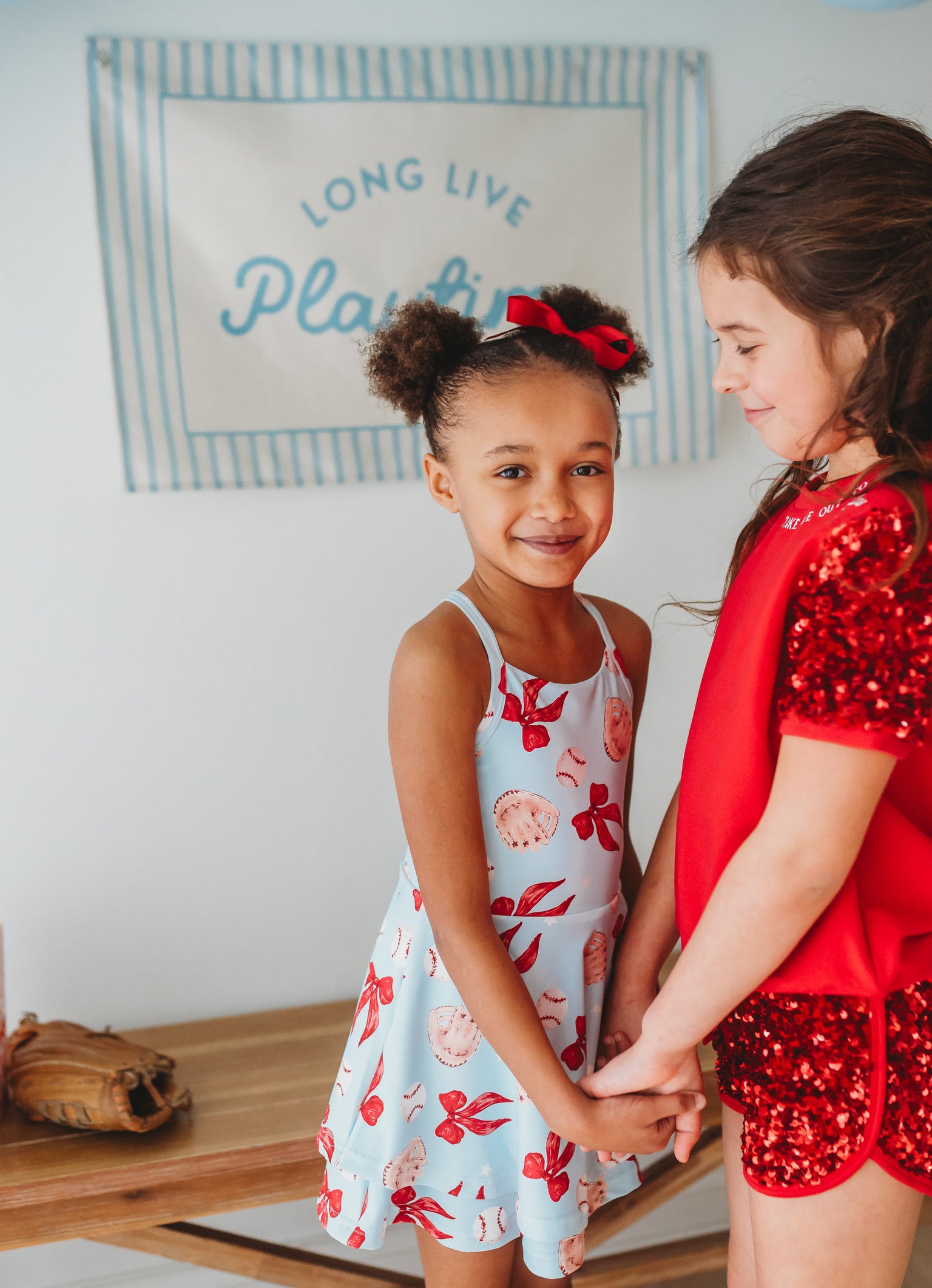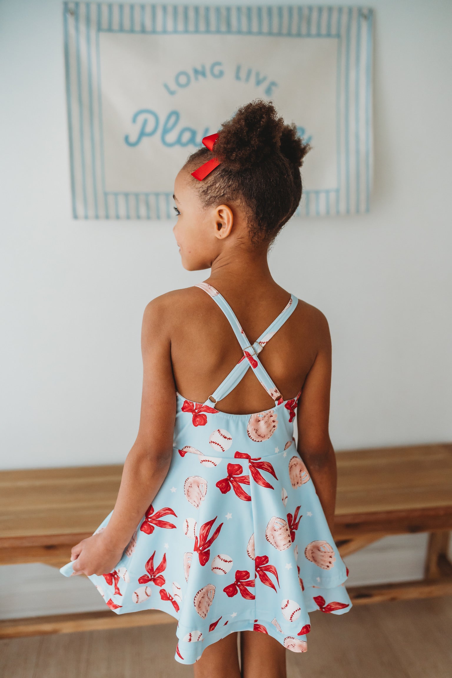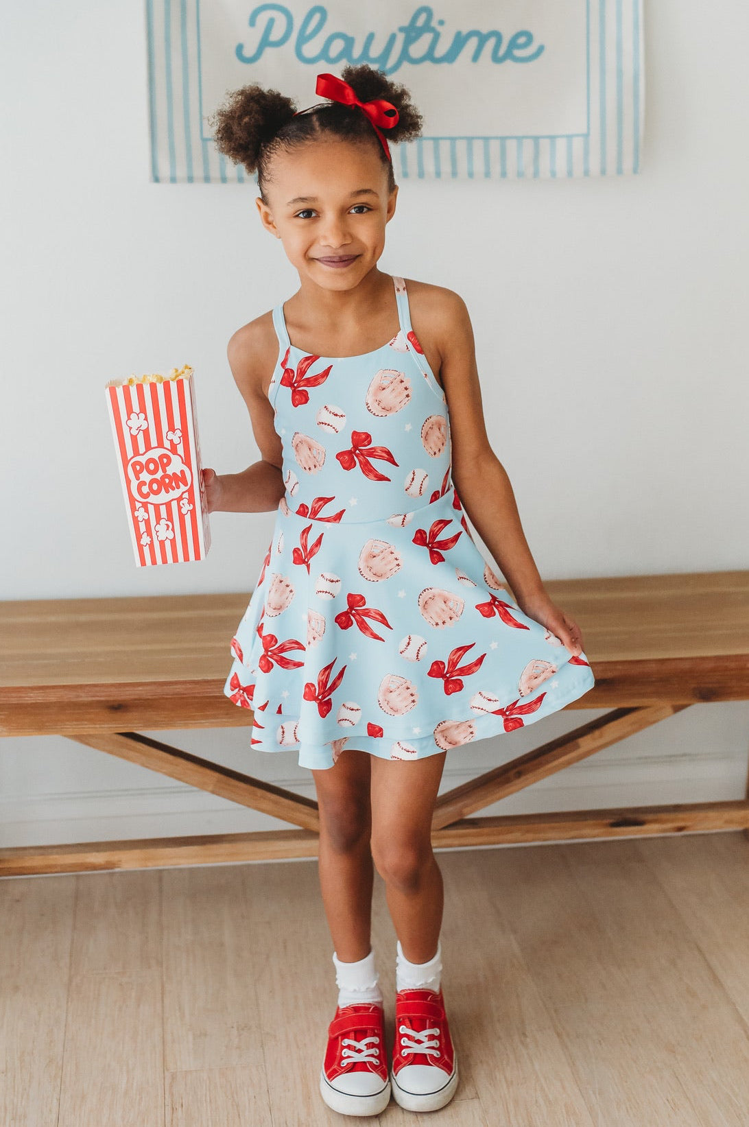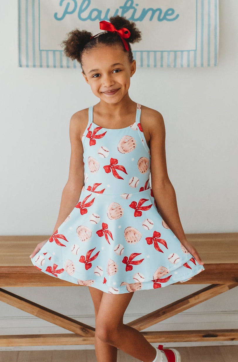 Meet the Ballpark Babe Athletic Dress—our classic style reimagined in the cutest ballpark-ready print. Perfect for game day or everyday adventures. Whether she's cheering from the stands or playing in the field, this dress combines style with the comfort and functionality kids need.