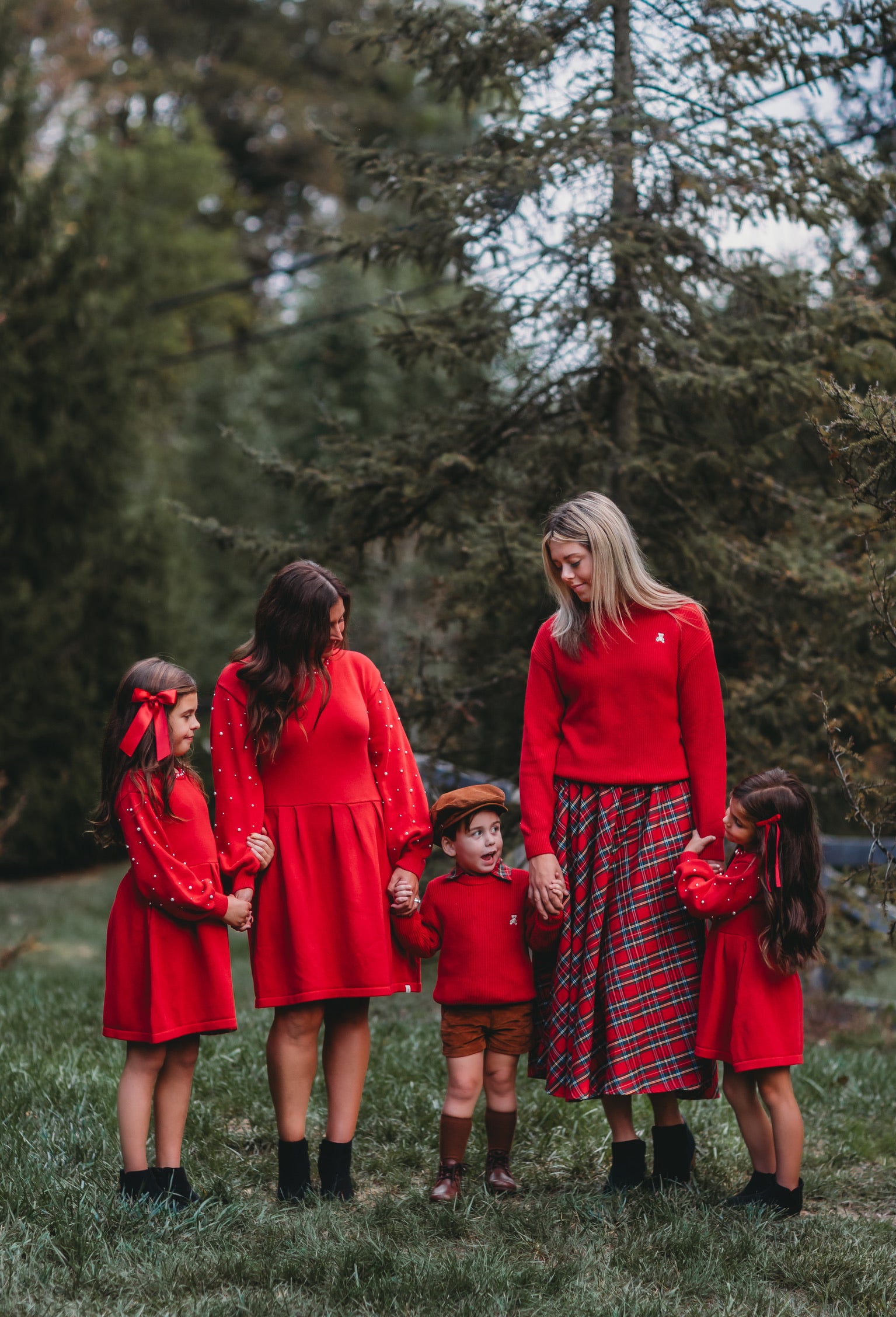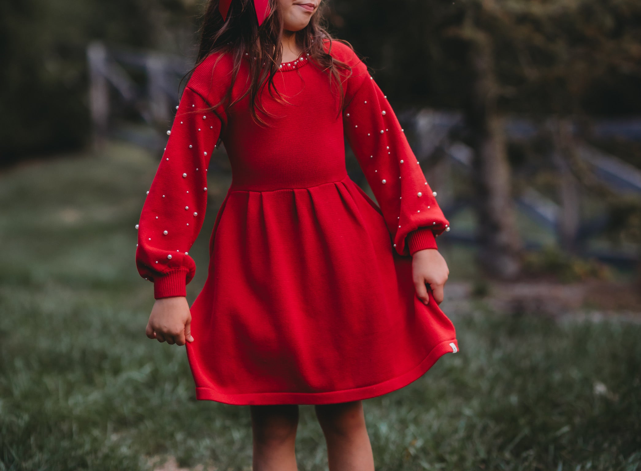 Cozy up this holiday season with the Noel Knit Sweater Dress! Featuring charming pearl-adorned sleeves, this playful red dress is a festive favorite that pairs perfectly with the matching women's version. Its soft knit fabric keeps you warm while adding a touch of holiday sparkle—ideal for family gatherings or festive photo ops. Celebrate in style and comfort with this merry must-have!
