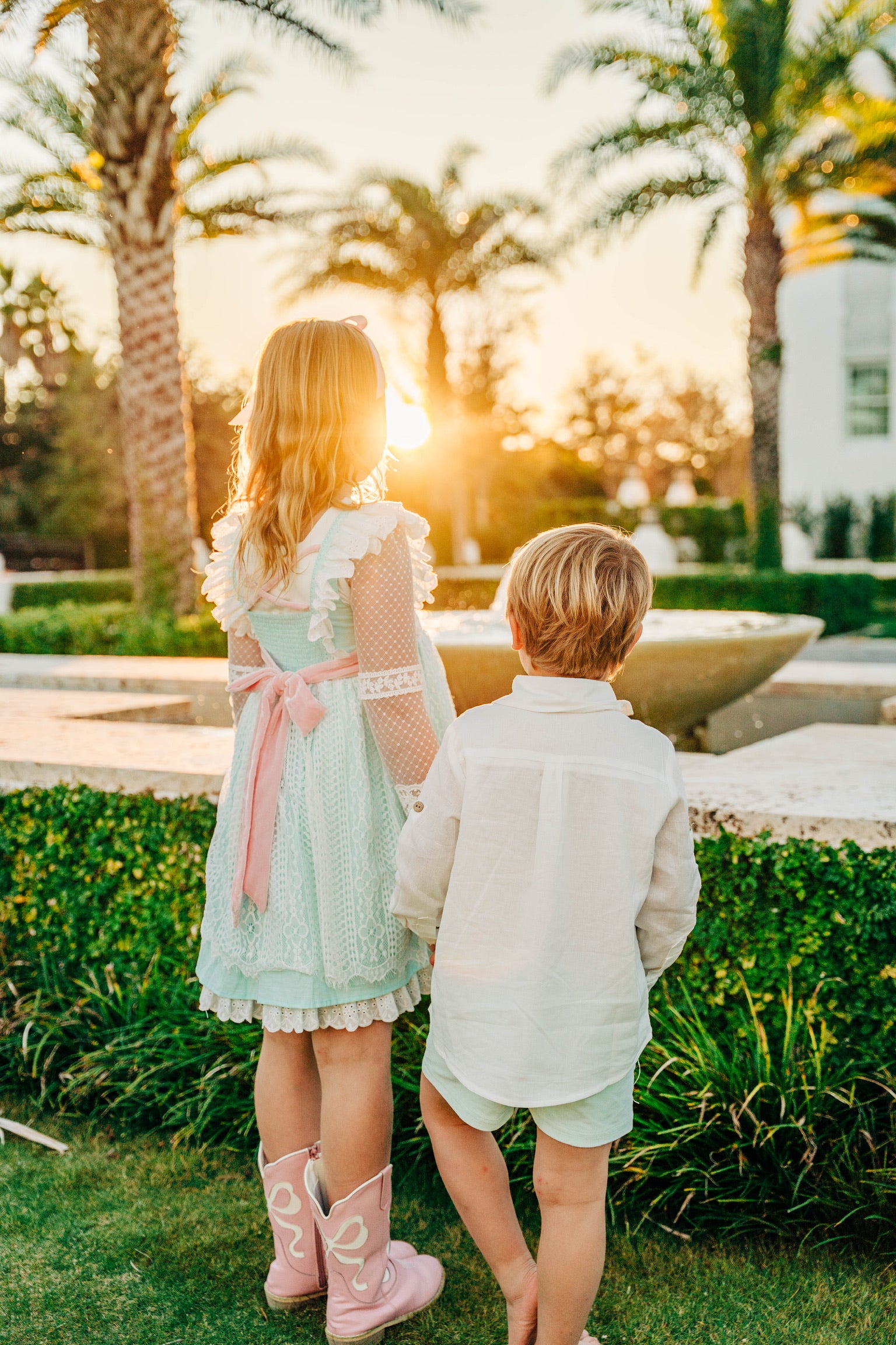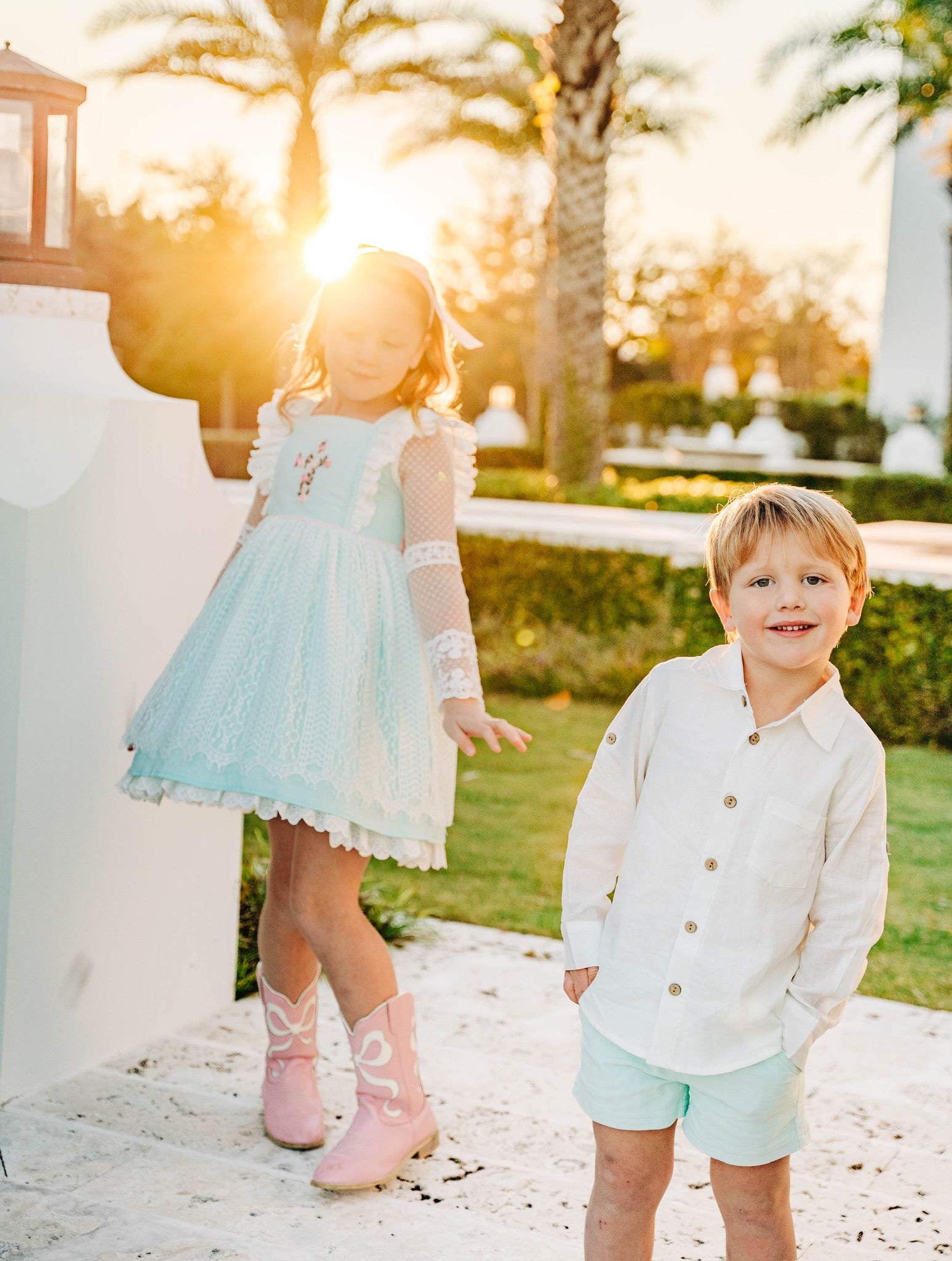He will be the star of spring with this classic white button-up shirt. Perfect for transitioning from casual to dressy, this timeless design will make him stand out in style!