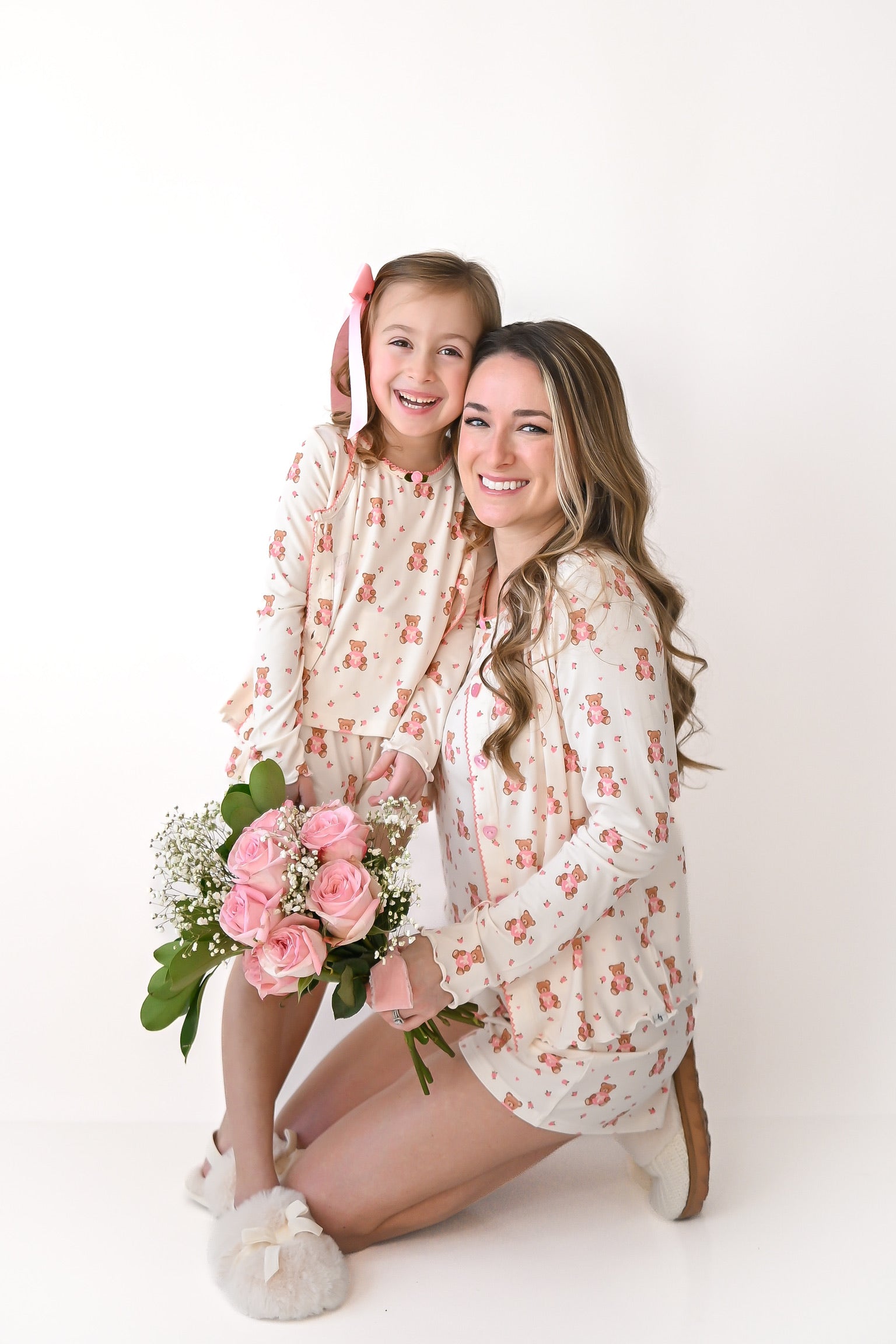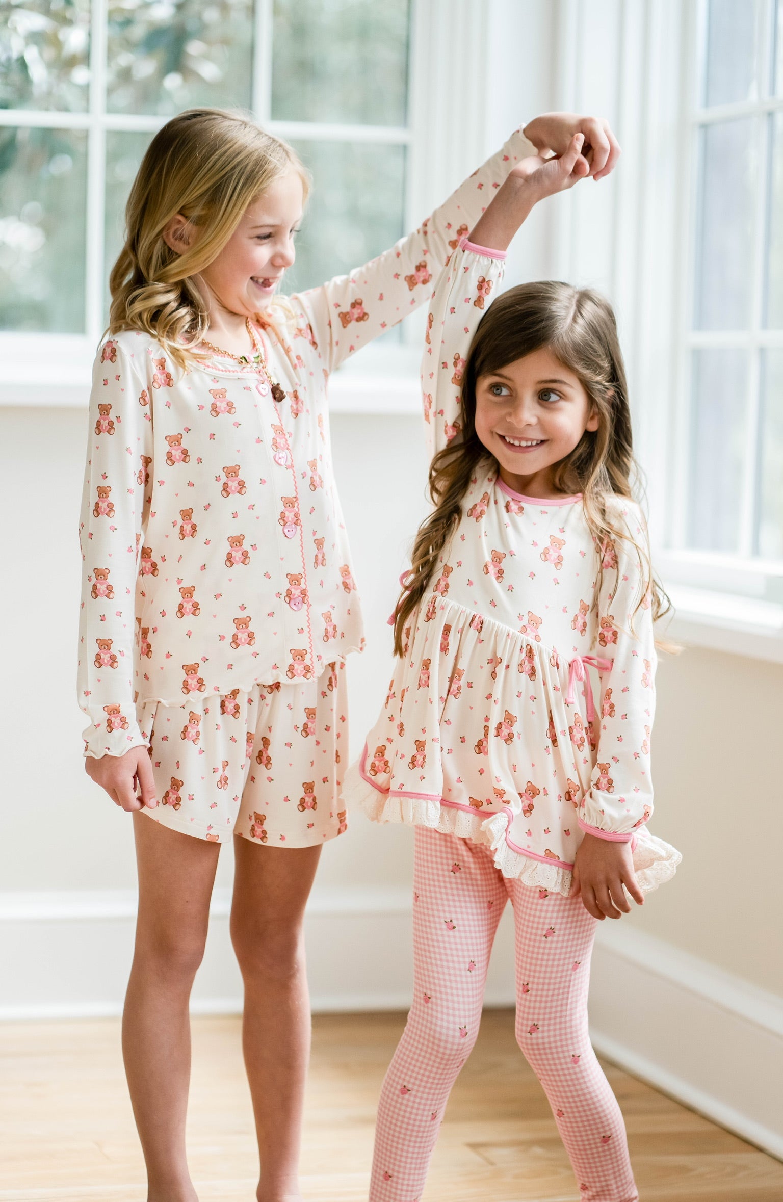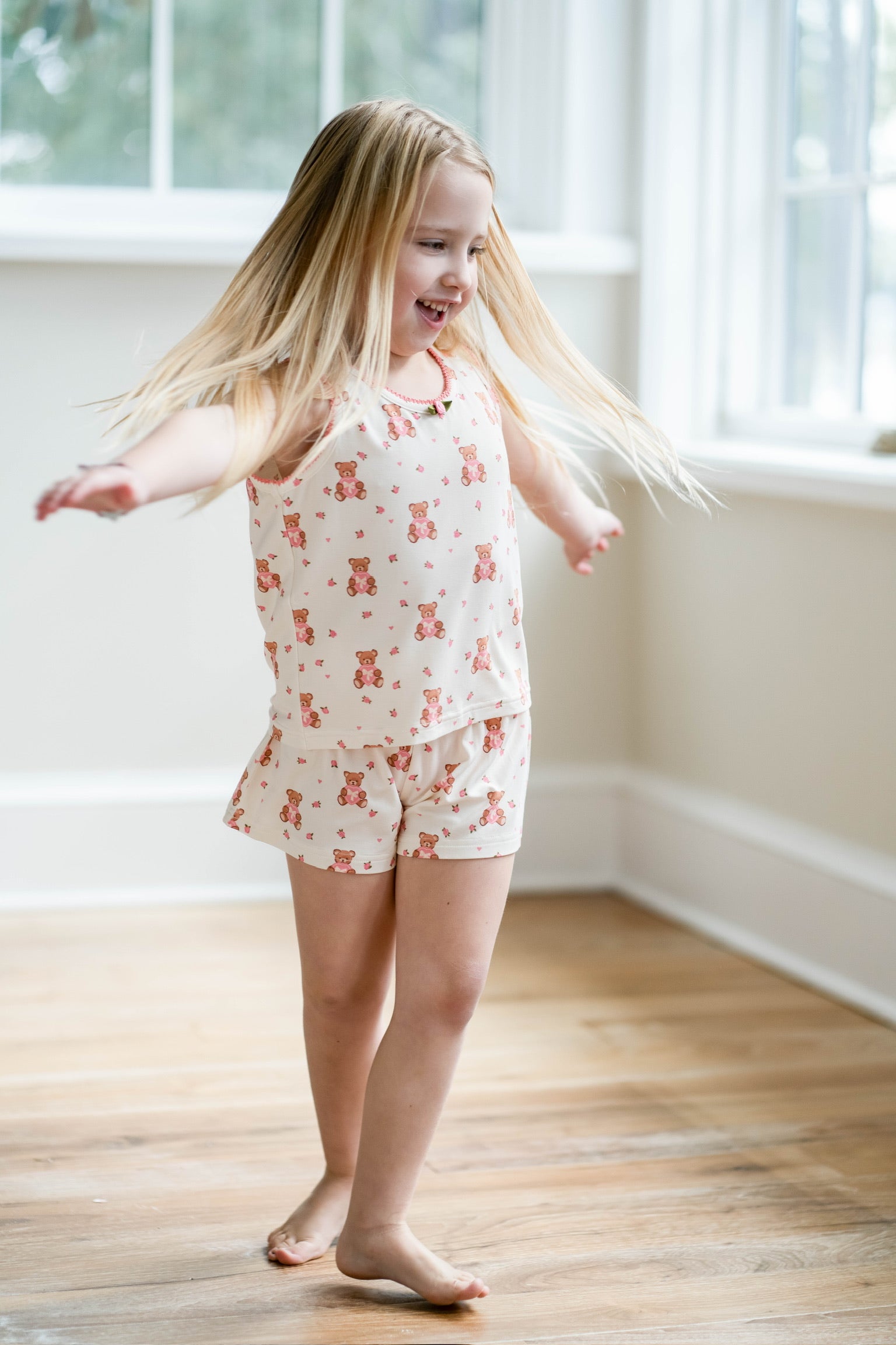 Snuggle into comfort with our Beary Sweet 3 Piece Comfort Set, featuring an adorable bear print across every piece. This cozy collection includes soft bamboo shorts, a relaxed tank top, and an oversized button-up cardigan—perfect for lounging at home or running errands in style. The breathable bamboo fabric keeps you cool and comfortable all day long, while the playful bear design adds a touch of whimsy to your everyday wardrobe. Mix, match, and layer these versatile pieces for endless outfit possibilities.