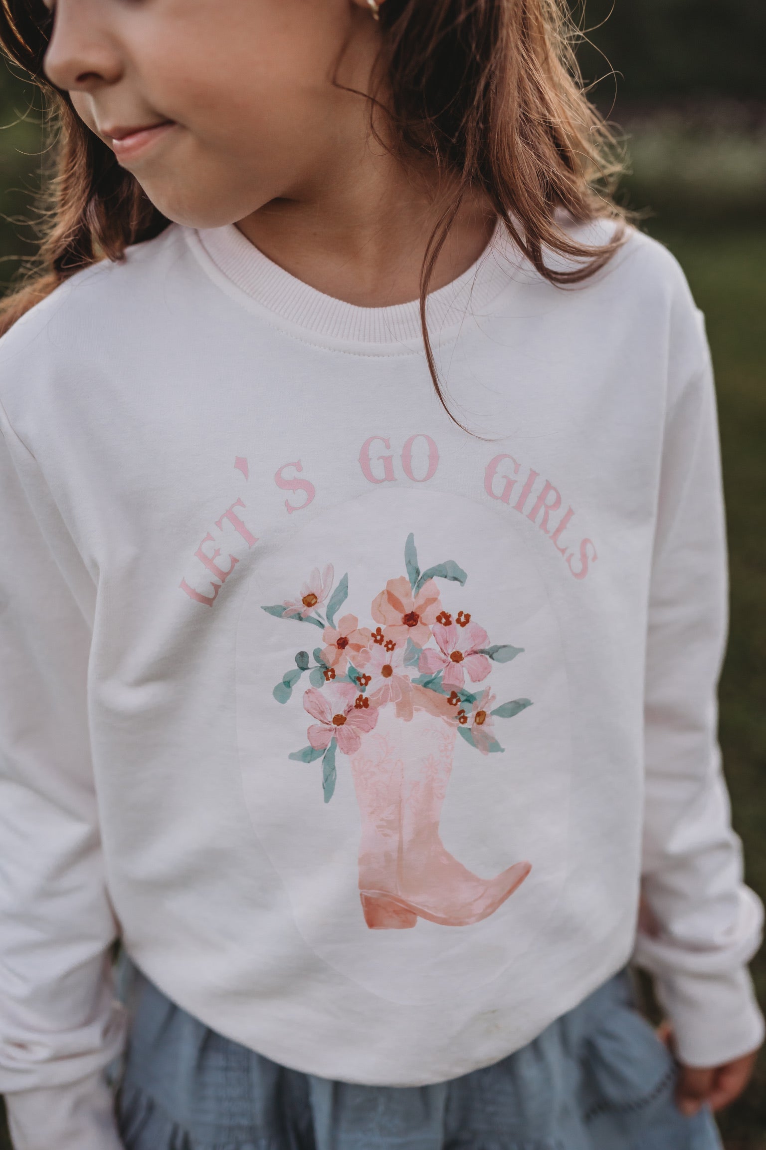 Embrace your inner cowgirl spirit with this playful Let's Go Girls Sweatshirt. Perfect for casual days or rodeo nights, it combines cozy comfort with a fun, spirited vibe. Whether you're kicking up dust or just lounging around, this sweatshirt keeps you warm and stylish all day long. Saddle up and let your style shine!