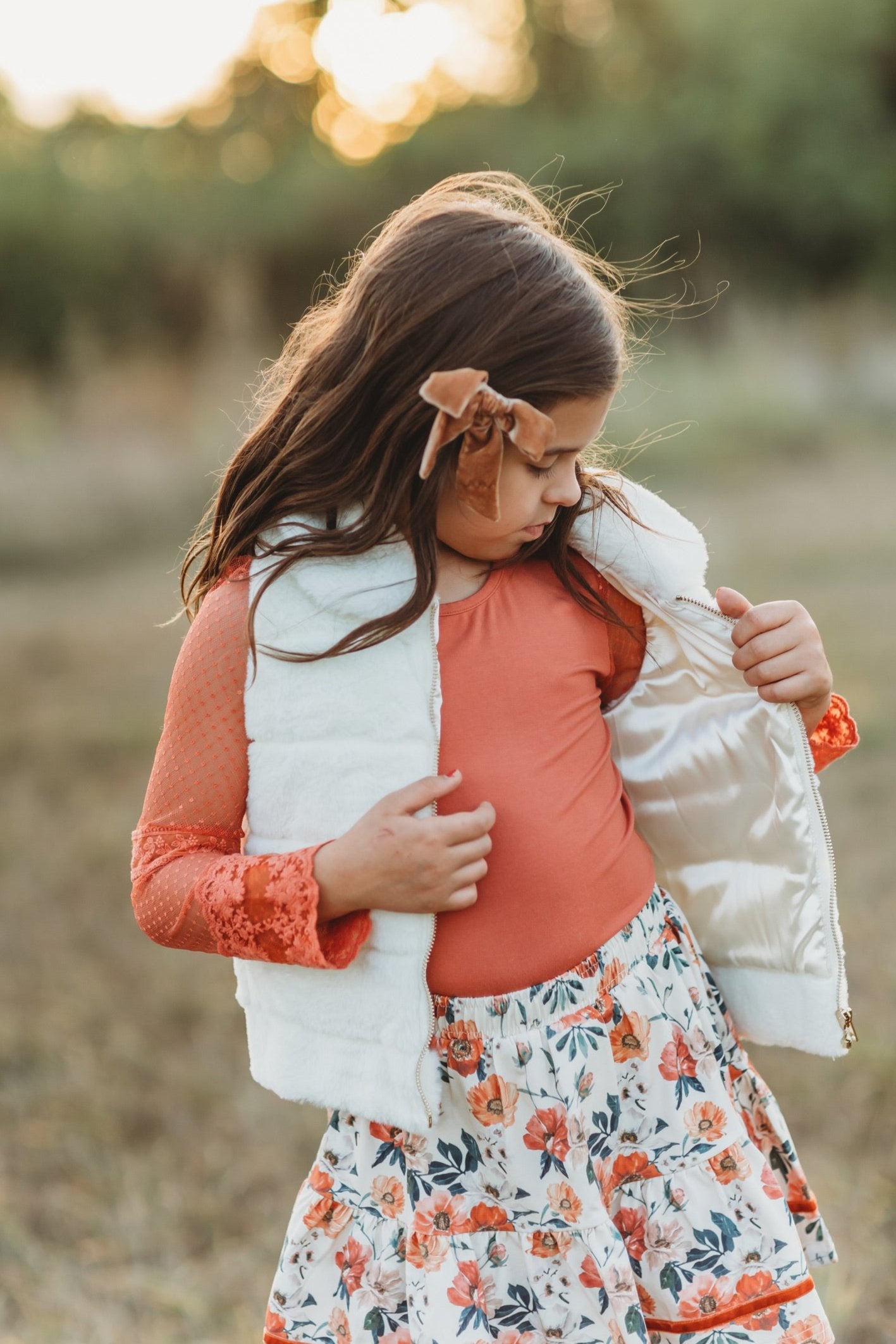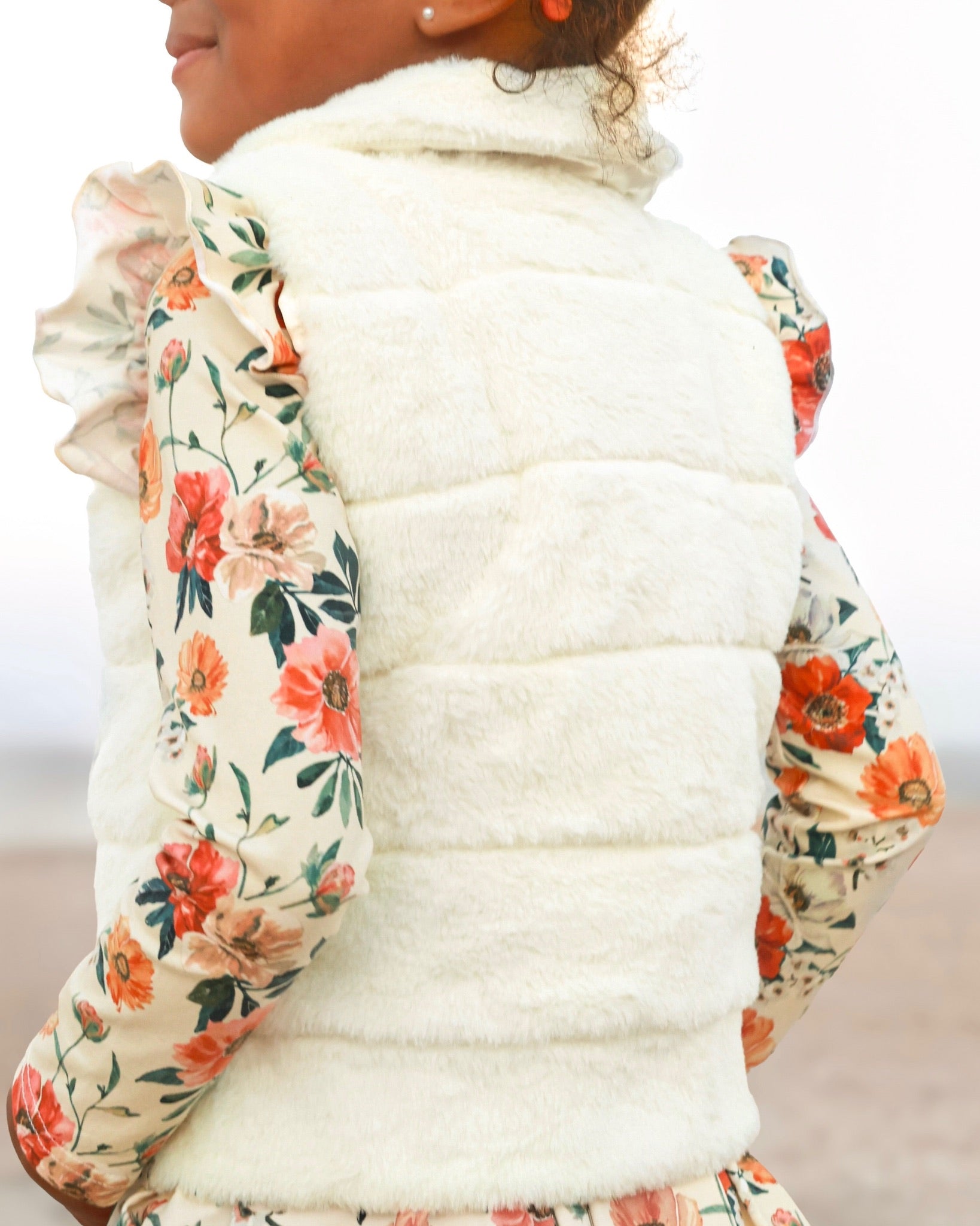 Get cozy with our Snowy White Fur Vest! Made with soft faux fur, this vest is both stylish and comfortable for girls. Add some flair to any outfit with this pretty piece!