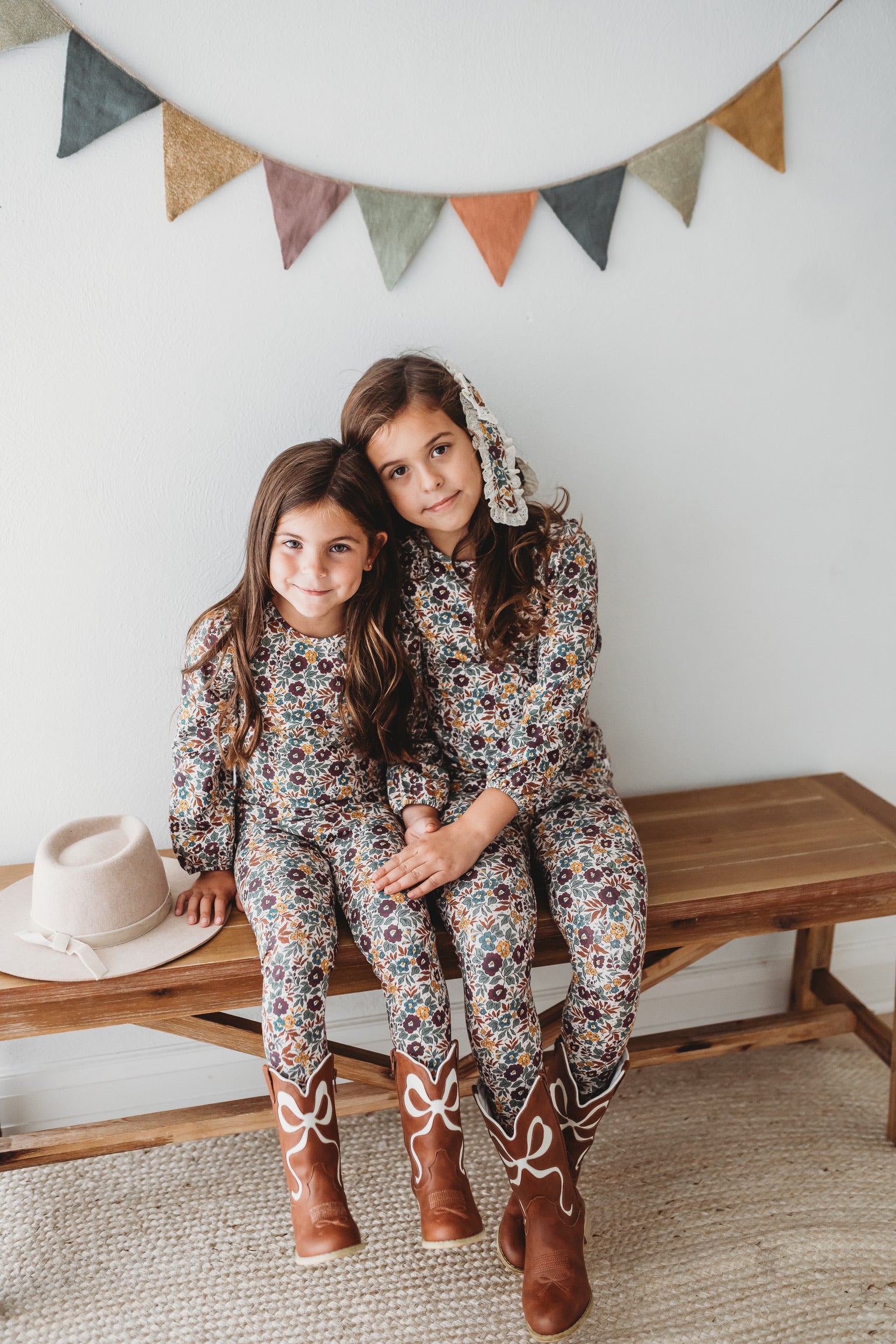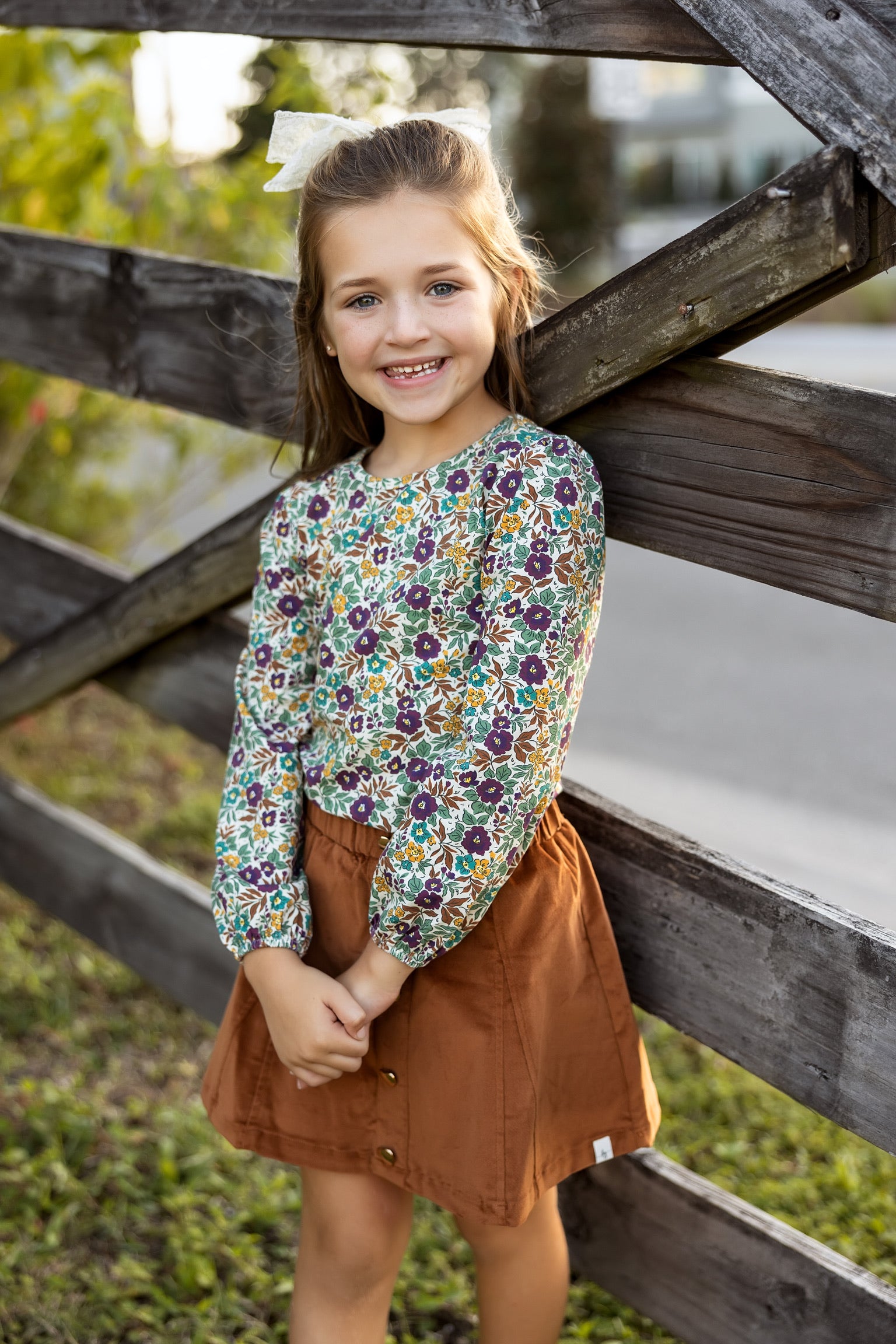 - Set includes two long sleeve layering shirts in fall floral patterns