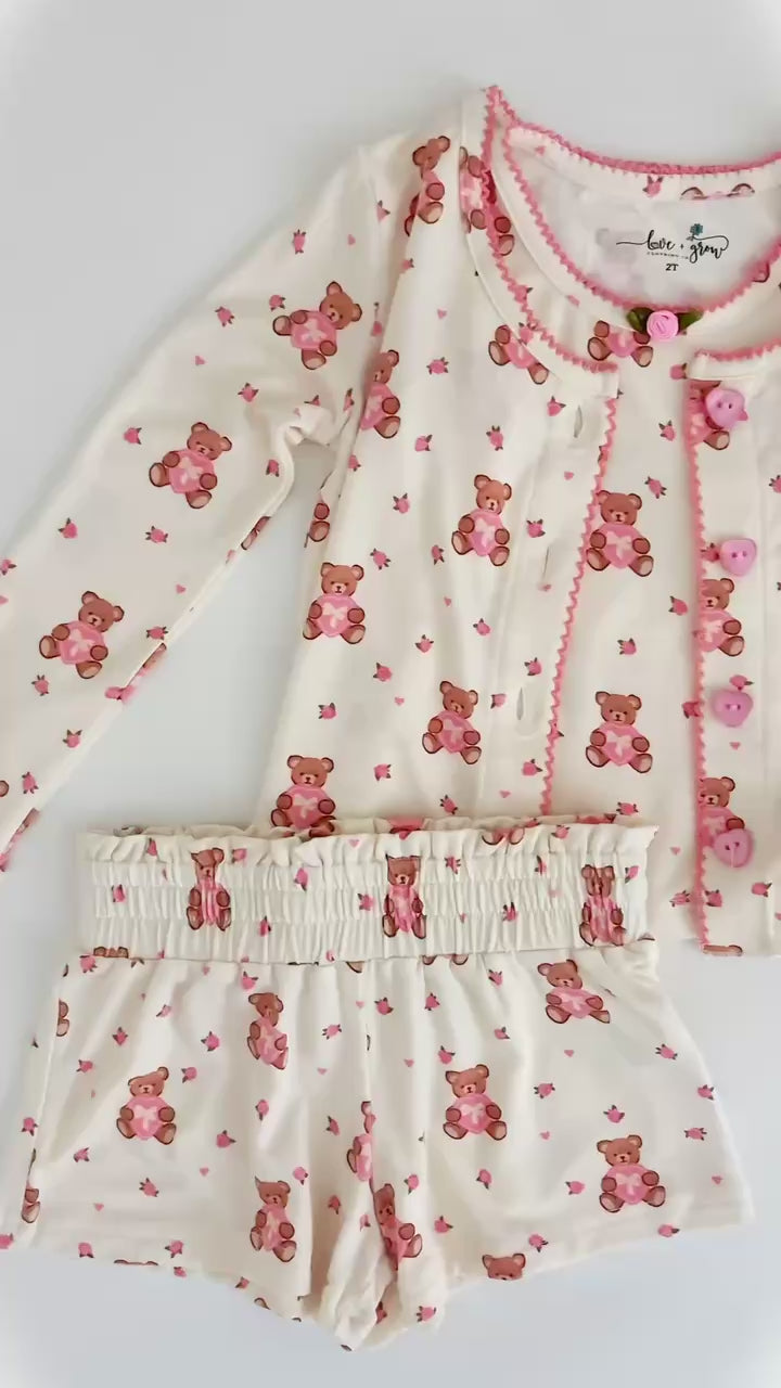Snuggle up in style with our Beary Sweet 3 Piece Comfort Set, featuring an adorable bear print that's almost too cute to resist. This cozy collection includes everything you need for ultimate relaxation—perfect for lazy days at home or matching moments with your daughter. Soft, comfortable, and undeniably charming, this set brings warmth and whimsy to your everyday routine. Whether you're lounging solo or creating matching memories together, the playful bear design adds a touch of joy to your comfort wardrobe.
